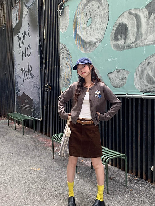 RAINY 复古氛围感灯芯绒半身裙春秋女宽松百搭a字高腰短款裙子